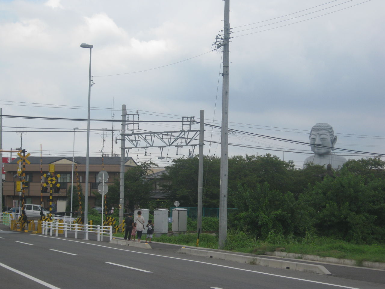| 愛知県江南市にある大仏。 住宅街のなかから、頭ひとつ飛びぬけて、ニョキっと顔を見せてます。 それもそのはず。奈良の大仏より2m大きい、全長18mの巨大仏。 しかも、個人所有ってんだから、驚きです。 表情も、のぺーっとしてて独特なんですよ。 |