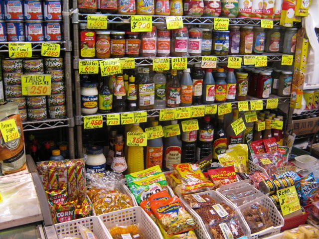 棚は、中国や東南アジアの食材で埋めつくされている。