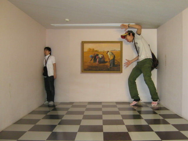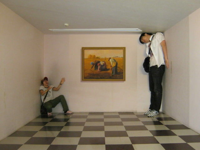 体の大きさが変化する部屋、重力が歪んでる部屋などなど、ありとあらゆる錯覚現象が堪能できます。