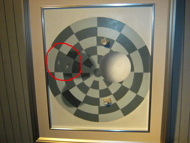 これは遠近感をつかったトリックで、部屋の右手が手前にせり出してるんです。