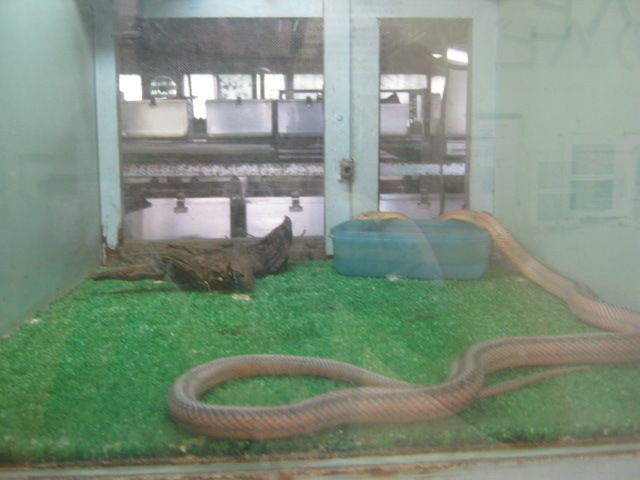 でっかいヘビが飼われているコーナーや、マムシ数千匹が放し飼いにされてるコーナーなんてのもある。