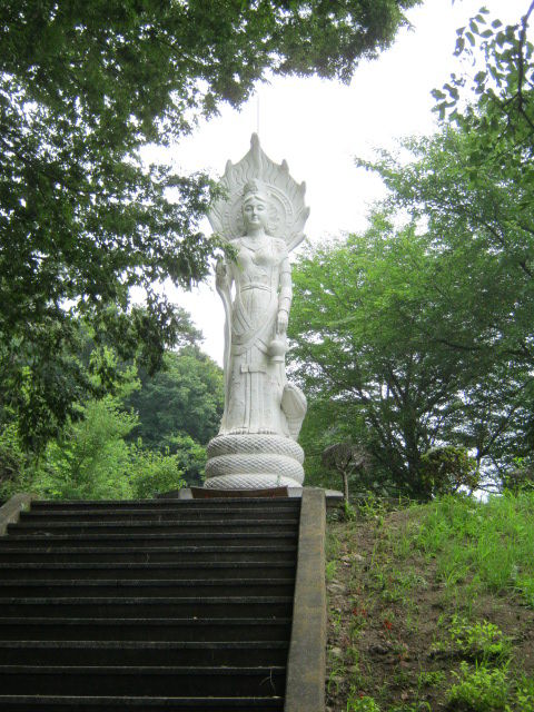 全長20mぐらいの大きい観音像が建てられており、足元には白蛇が巻きついてる。
