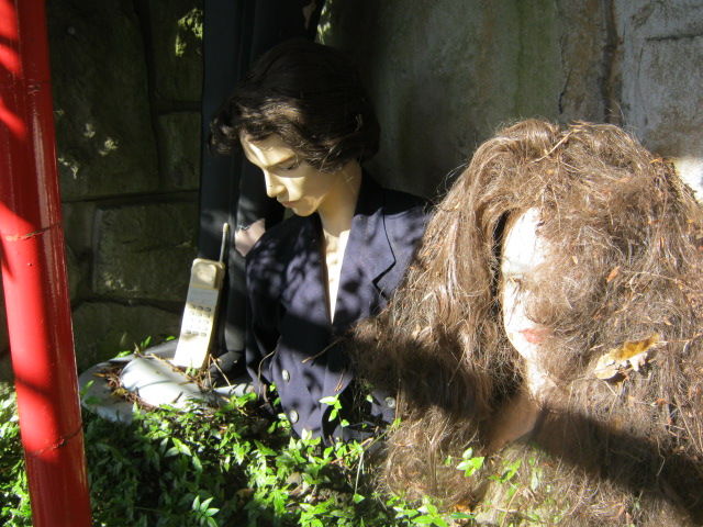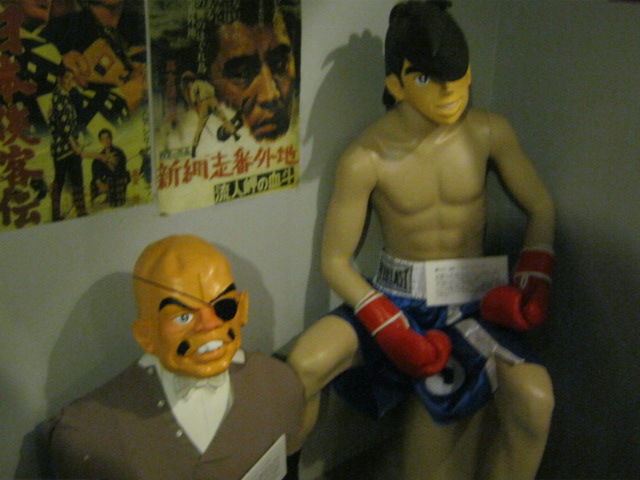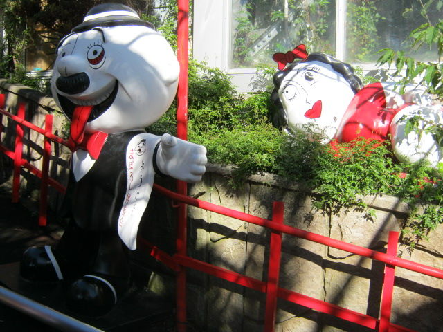 おばさんは「怪しい少年少女博物館」のマスコットなんですけど、おじさんは伊勢にあった「元祖国際秘宝館」のメインキャラ。2007年に閉園したので、引き取ったそうです。珍スポ好きにはたまらないコラボですね。