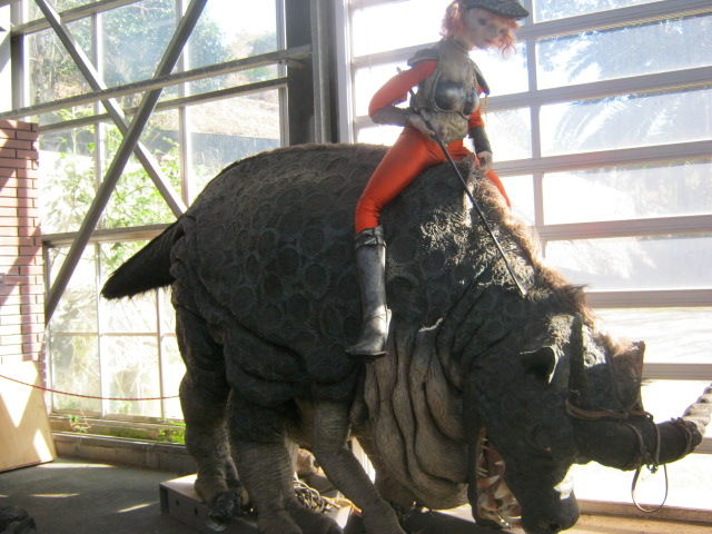 何の説明もなく、密林エリアに置かれている、サイの化け物と顔色の悪い女。