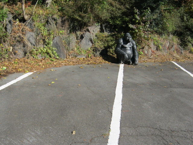 駐車場の隅っこに何かいるなーって近づいたら、ゴリラ。初っ端からかましてくれます。
