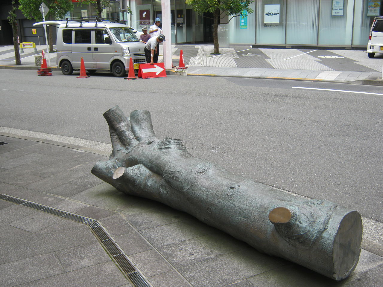 ▲『遡洄する大木』 西雅秋 こんな不自然なもんの近くで、普通に道路工事してるのが面白い。