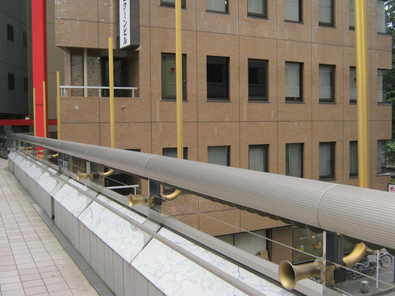 ▲『古典的な交信機器、伝声管』 牛嶋達治 通路の手すりにさりげなく。