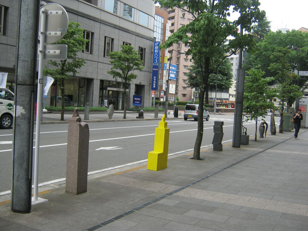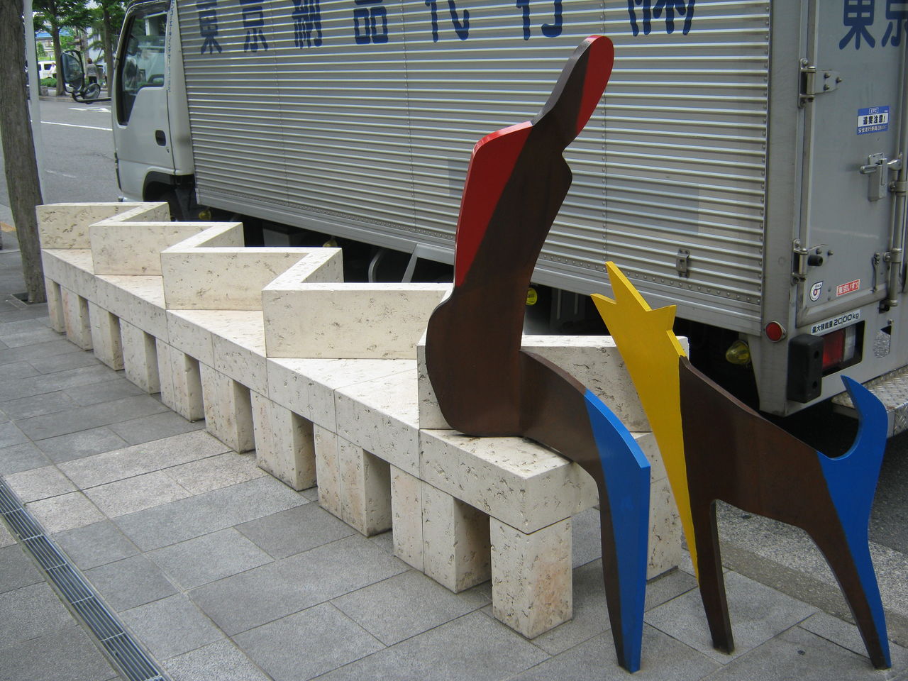 また、作品には、キャプション(題名や作家名が書かれたパネル)がつけられてないので、町の生活に、ごく自然と溶け込んでます。