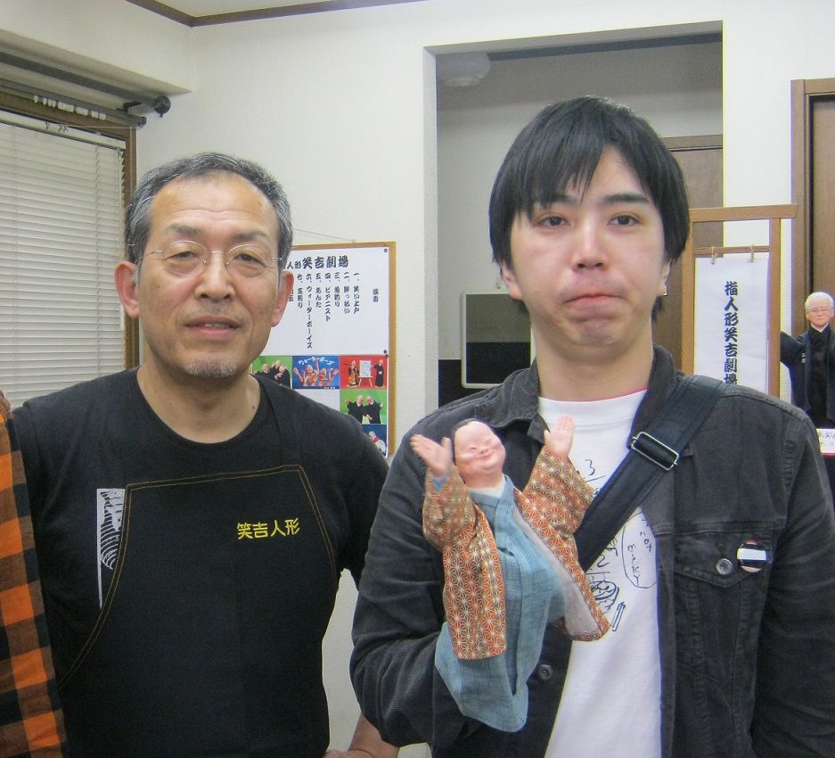 ▲人形作家の露木さんと、写真を撮ってもらいました。指人形が一番笑ってます。