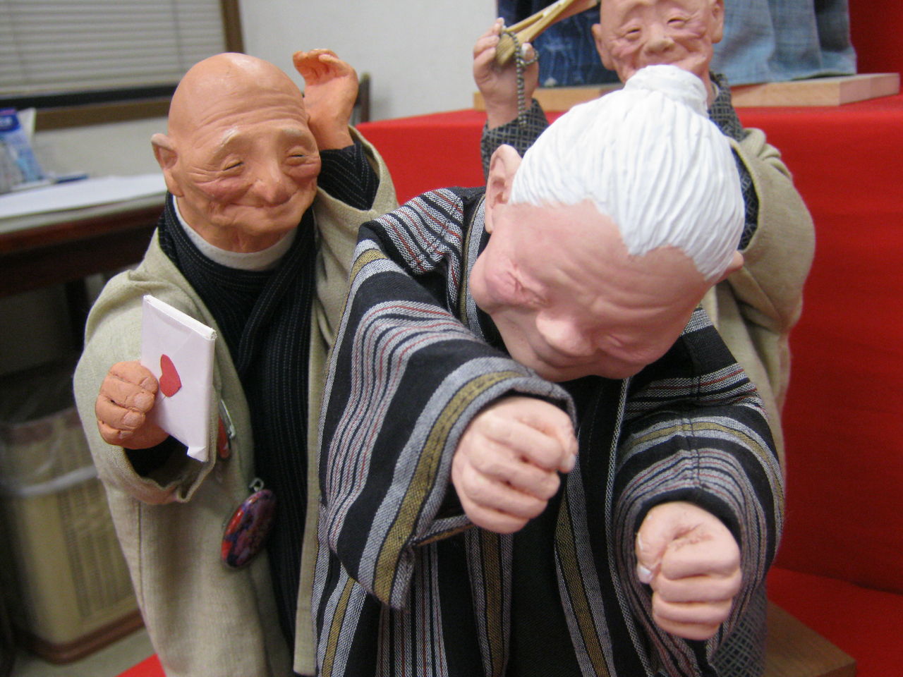 指人形たちは、とっても表情が豊かで、見ていてほんわかするんだけど、やけに老人の人形ばっかりなのね。若者よりも老人のほうが、良い表情してるから、ジイちゃんバアちゃんばっかし作っちゃうんだって。