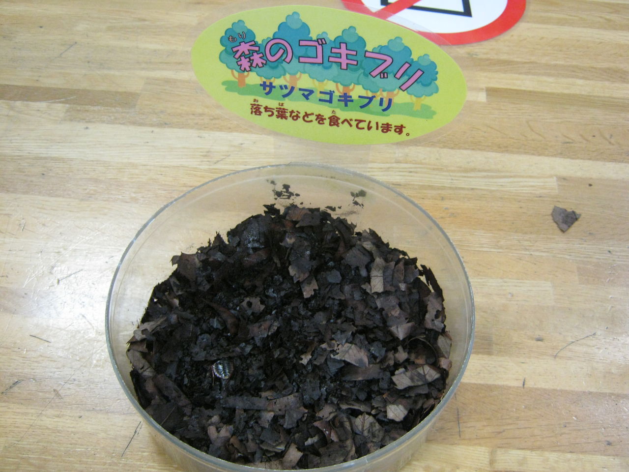 落ち葉の中にいる、サツマゴキブリを触れるようです。