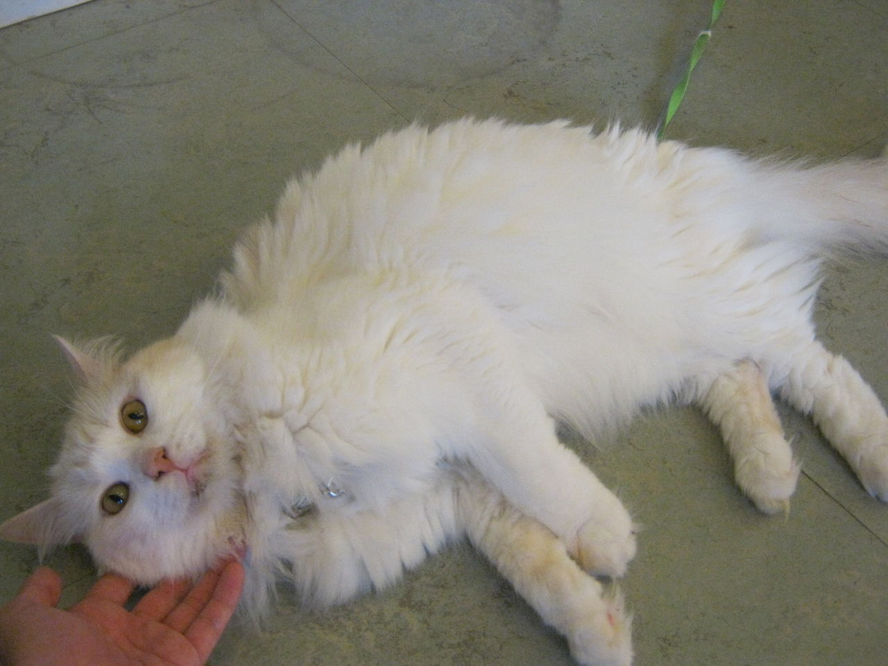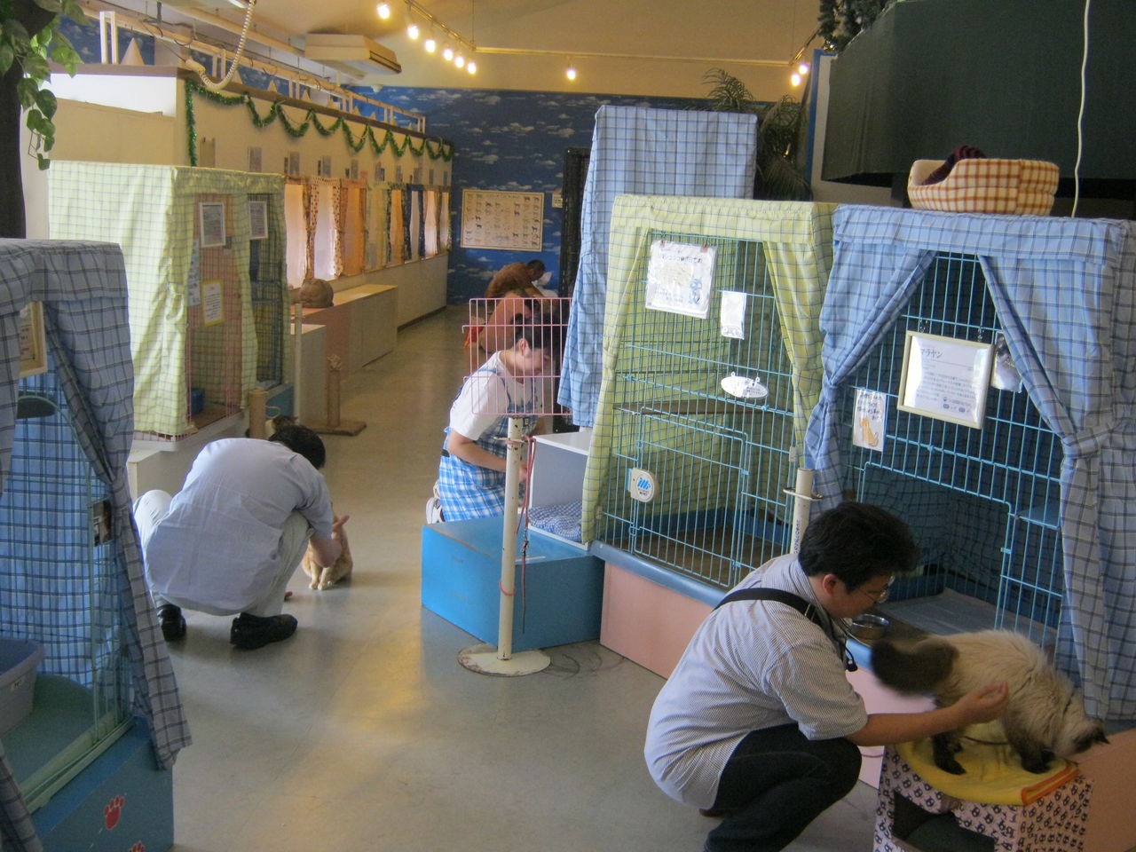 ケージの前に、首輪で結ばれたネコちゃんが何匹もいて、ふにふに撫でられます。