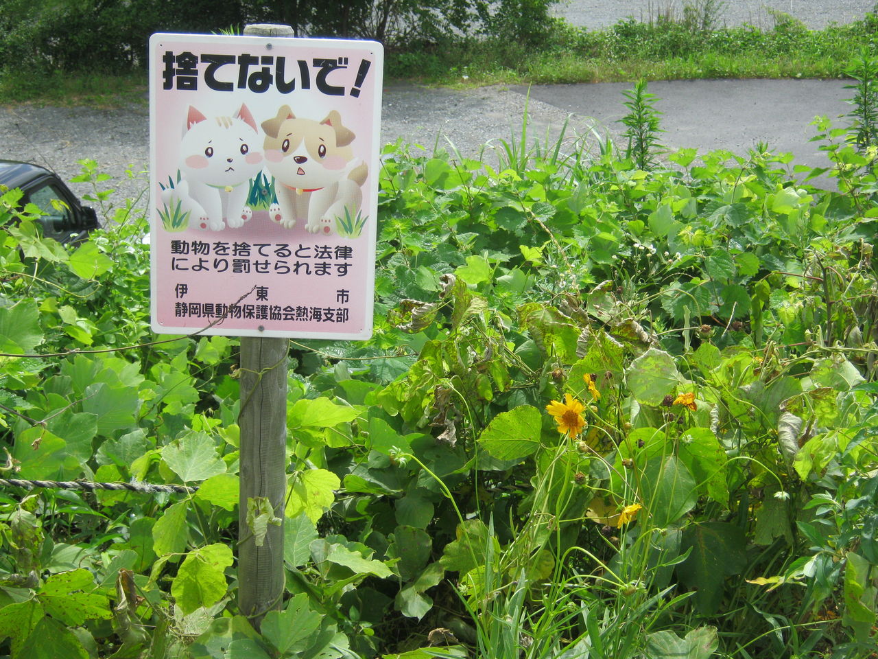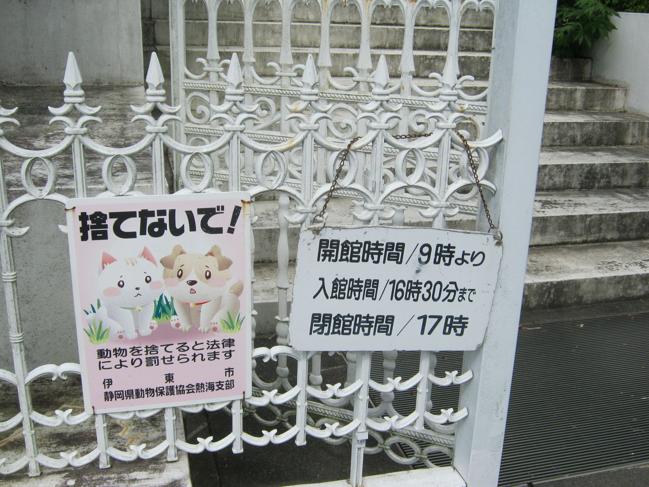 ▲博物館のまわりには「動物を捨てないで!」の看板が。