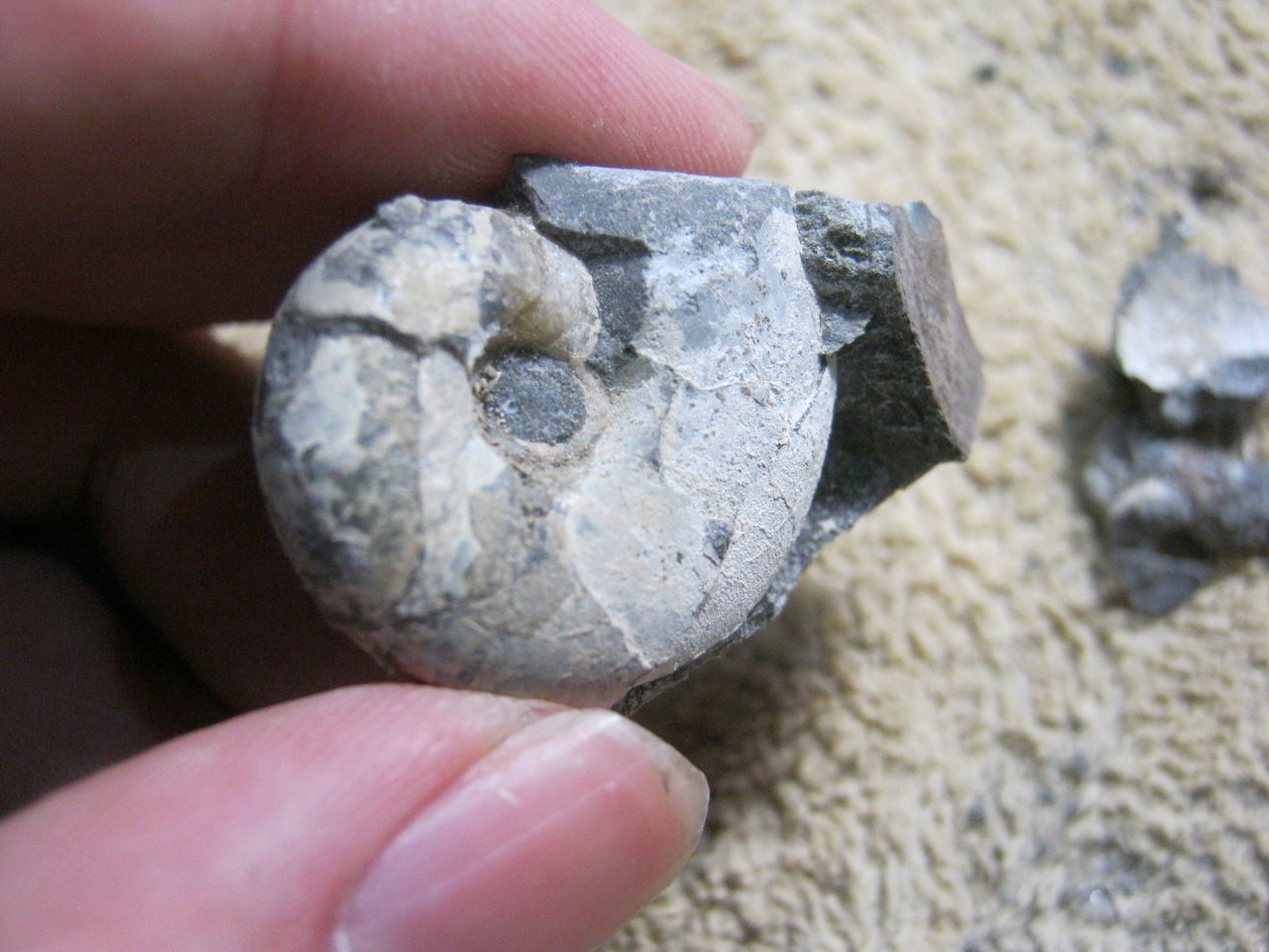 よく見ると、中央にアンモナイトが埋まってます。