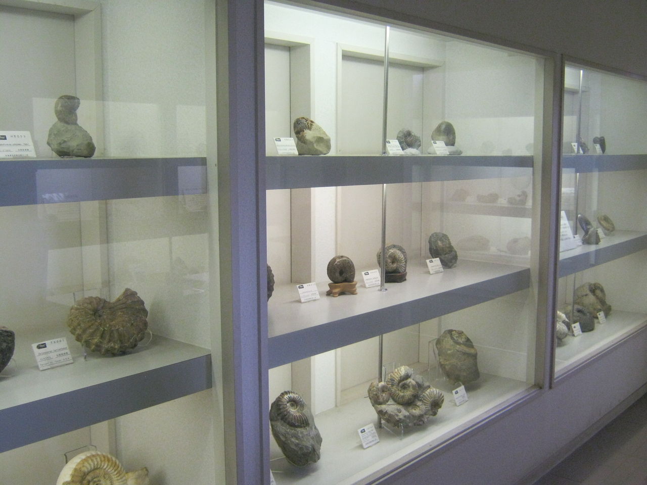 大きいのから、小さいのまで、100個以上のアンモナイトを展示しています。