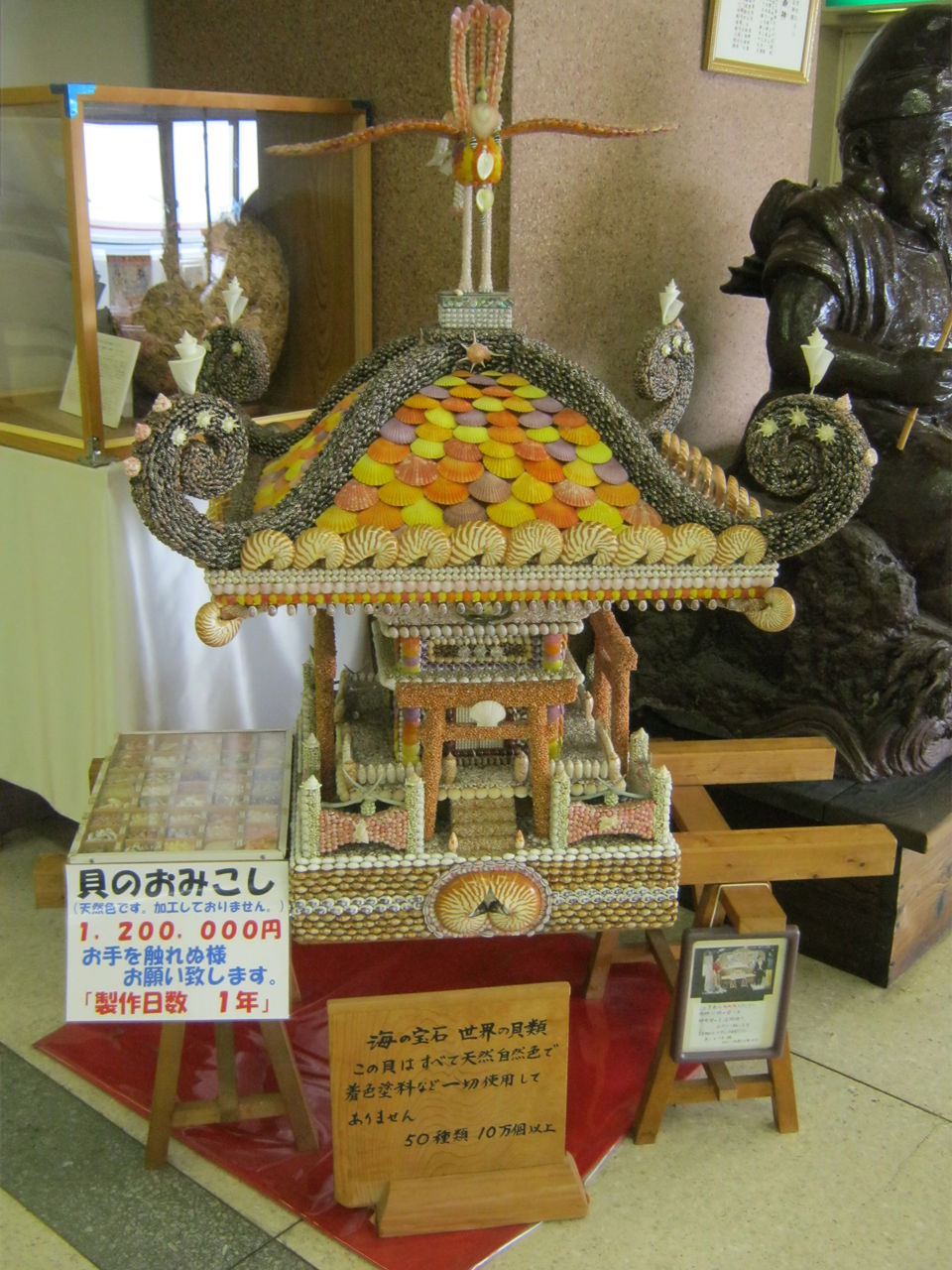 お土産コーナーには、貝のおみこしが120万円で販売されています。