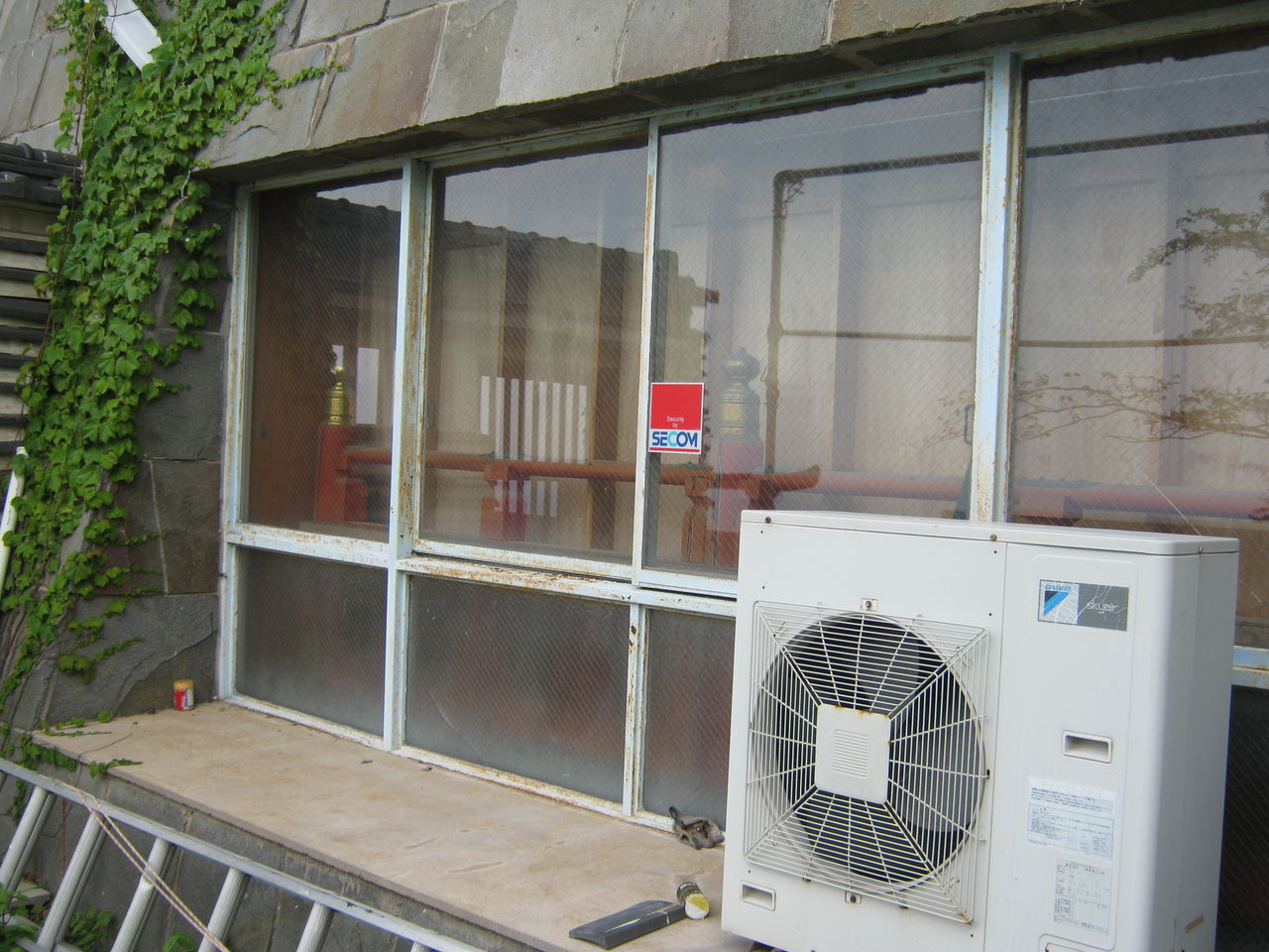 窓にも、セコムステッカーがぺたり。