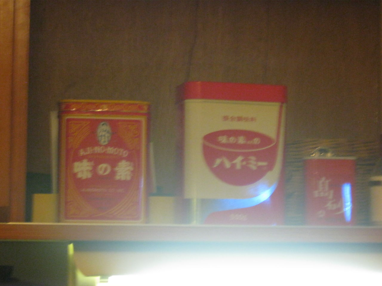 ▲棚におかれている調味料も、昔ながらのデザインです。