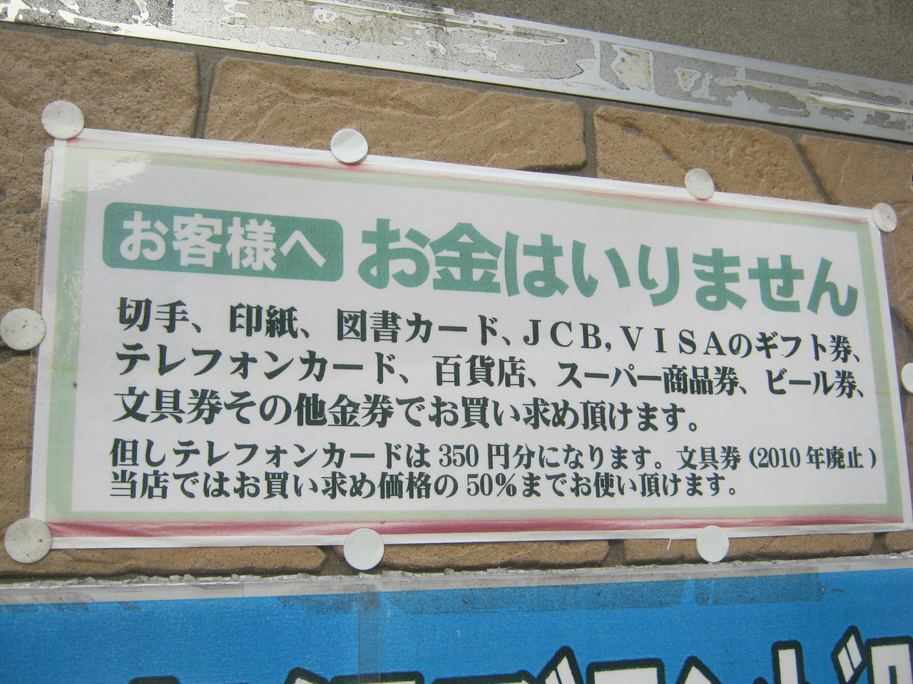 「お客様へ。お金はいりません。」