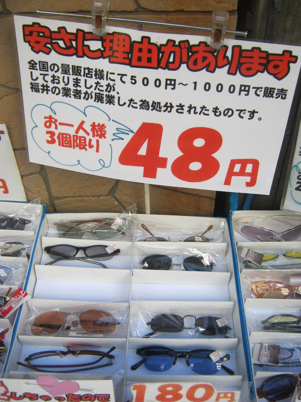はい、こちらは48円。東南アジアの物価じゃないよ、れっきとした日本のメガネ屋だよ。