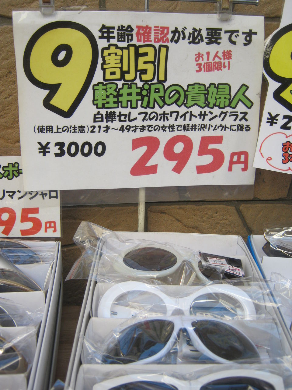 ▲軽井沢の貴婦人用サングラス 295円