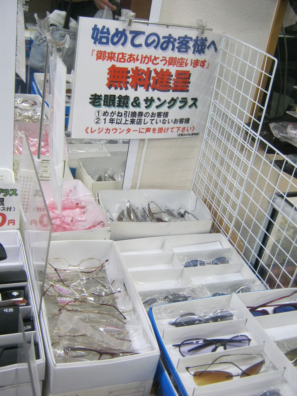 ▲はじめてのお客さんは、タダで老眼鏡もらえます。