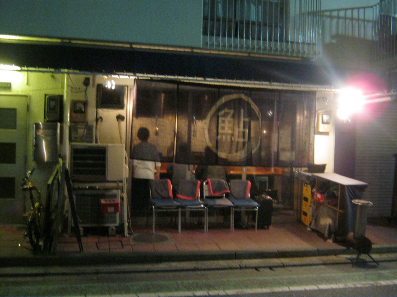 屋台っぽい簡素な外観に、鮎ののれんが風流ですな。