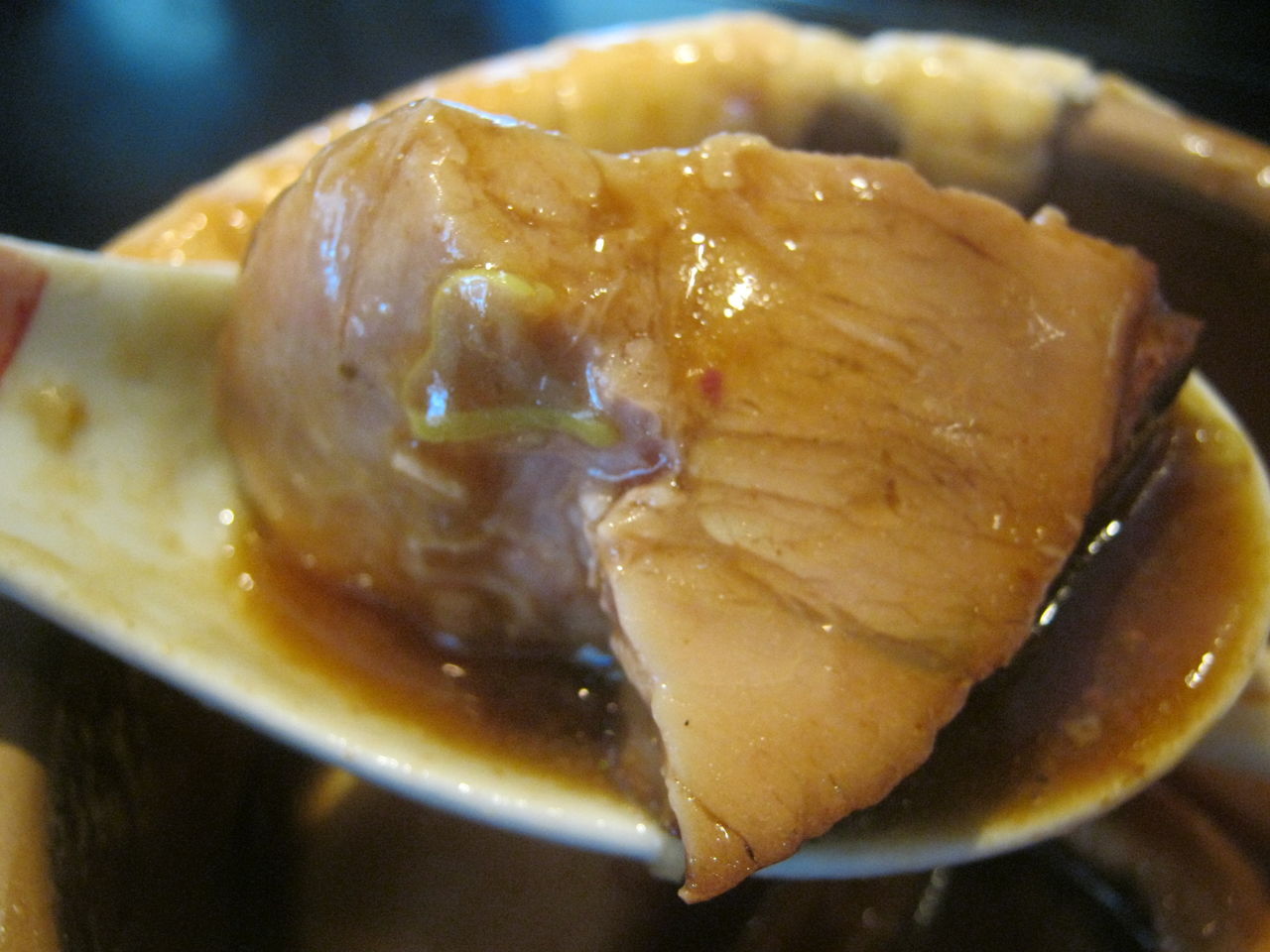 ▲パイ生地に隠された、チャーシューを発掘。ぼてっと分厚い。