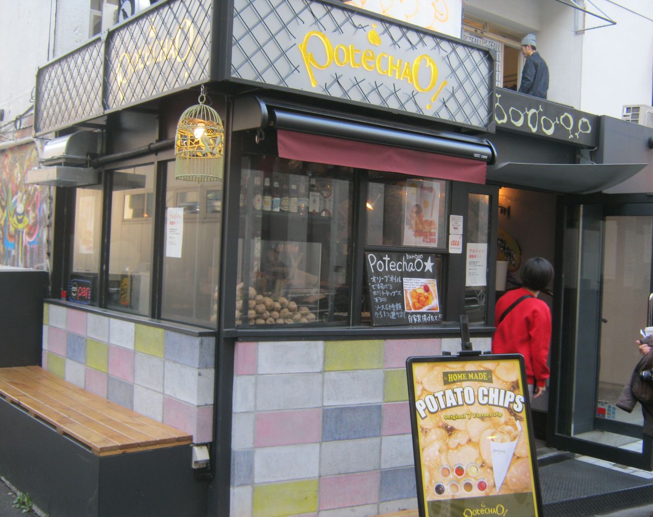 | 原宿にあるダイニングバー キャットストリート近くのお洒落極まりないダイニングなんだけど、店頭で揚げたてポテトチップスを売ってるのだ。 |