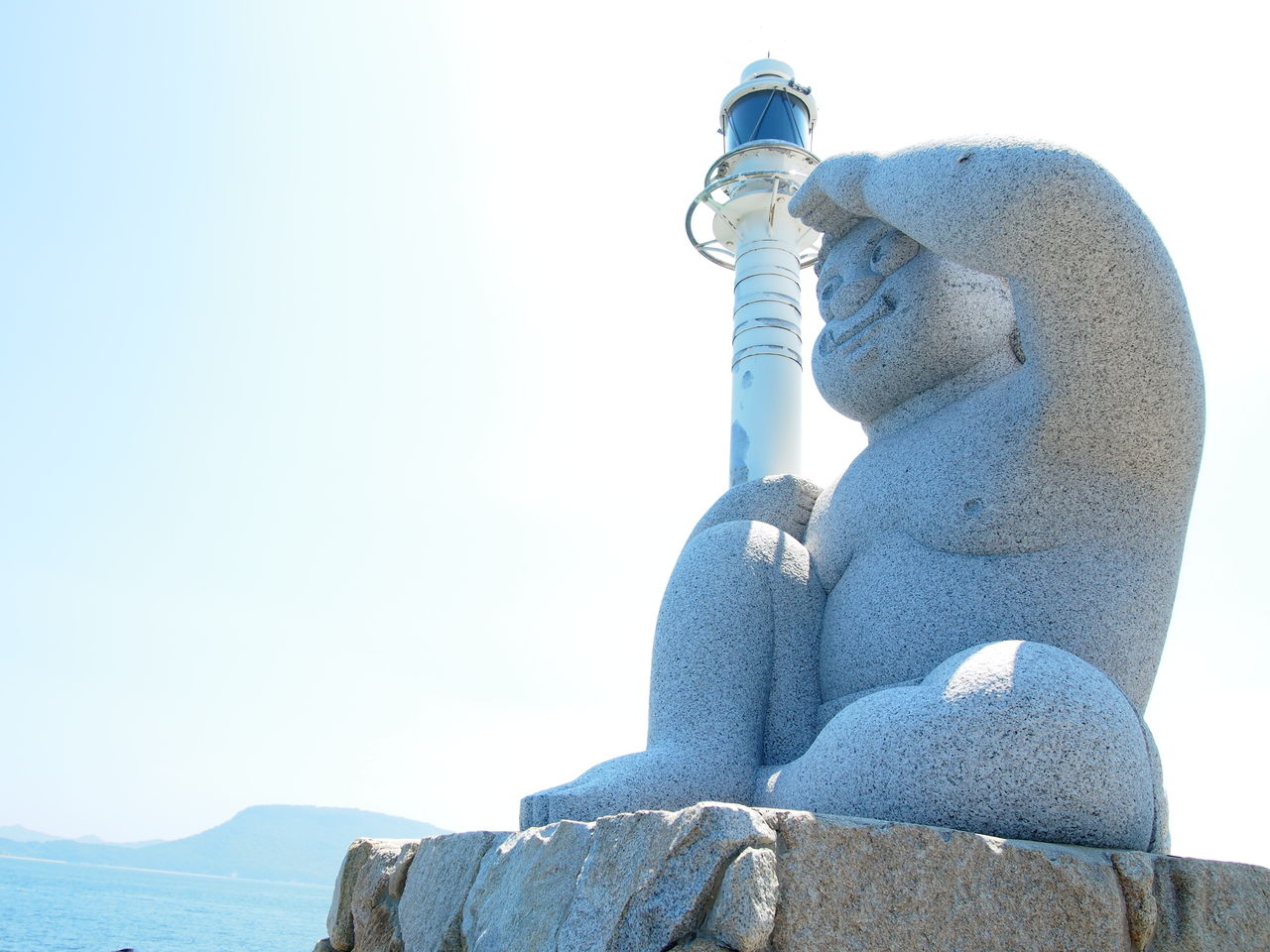 1時間ちょっとでグルッと1周できる小さな島。島の中央、小高くそびえる山のうえに鬼の本拠地「鬼が島大洞窟」はあるんだな。鬼の石像に洞窟までの距離が書かれてる。自分らの本陣を教えていいのか。