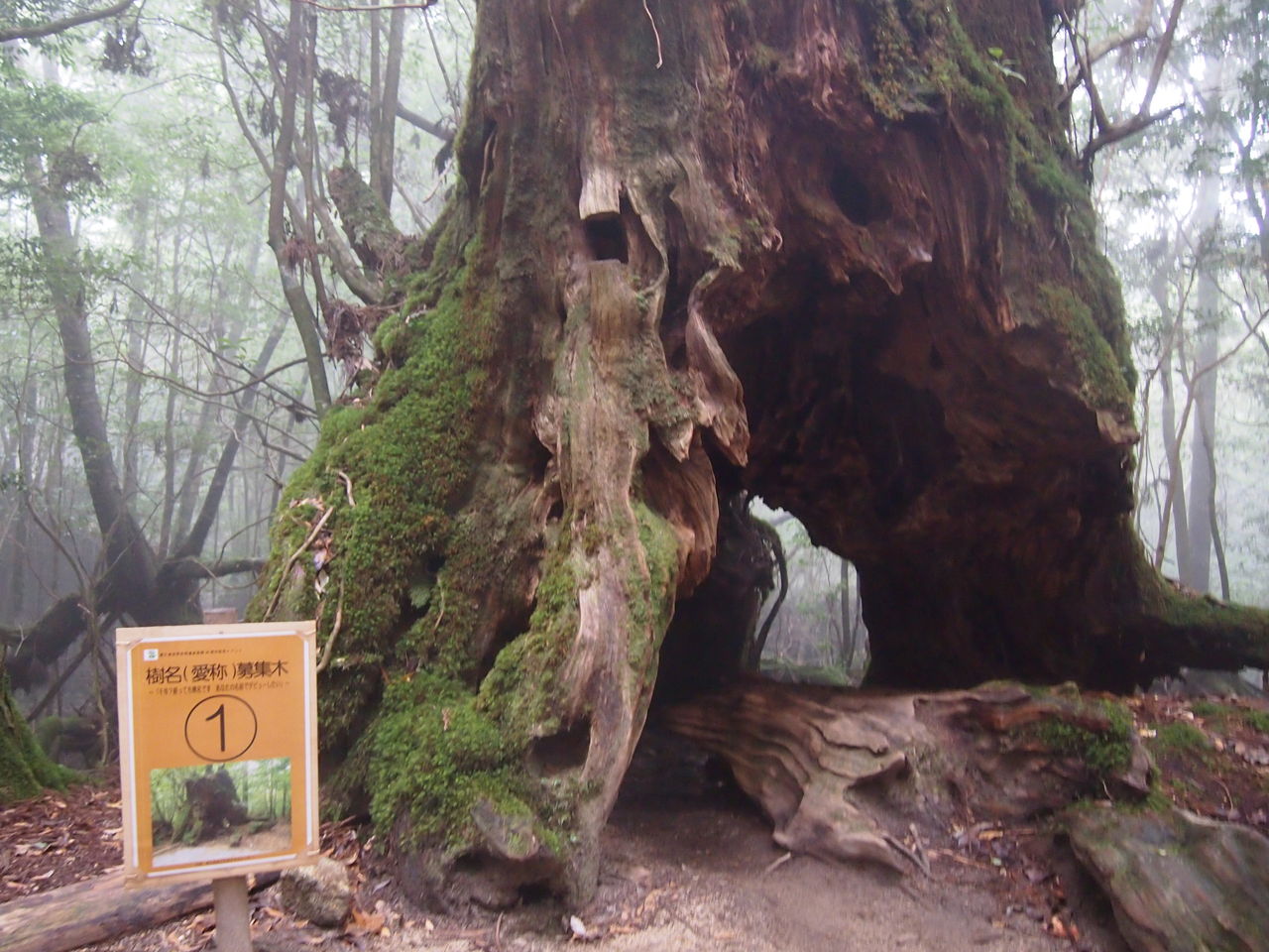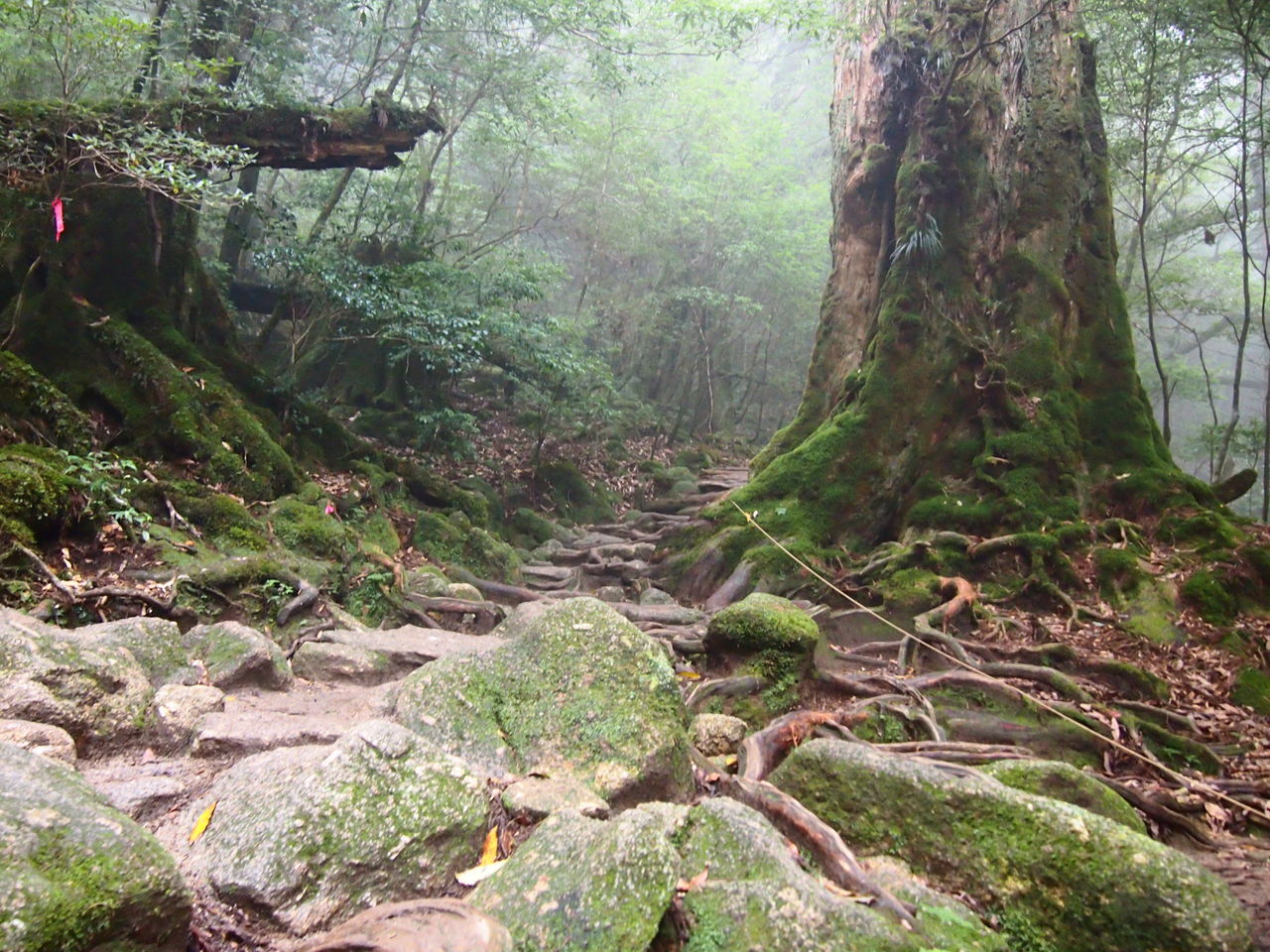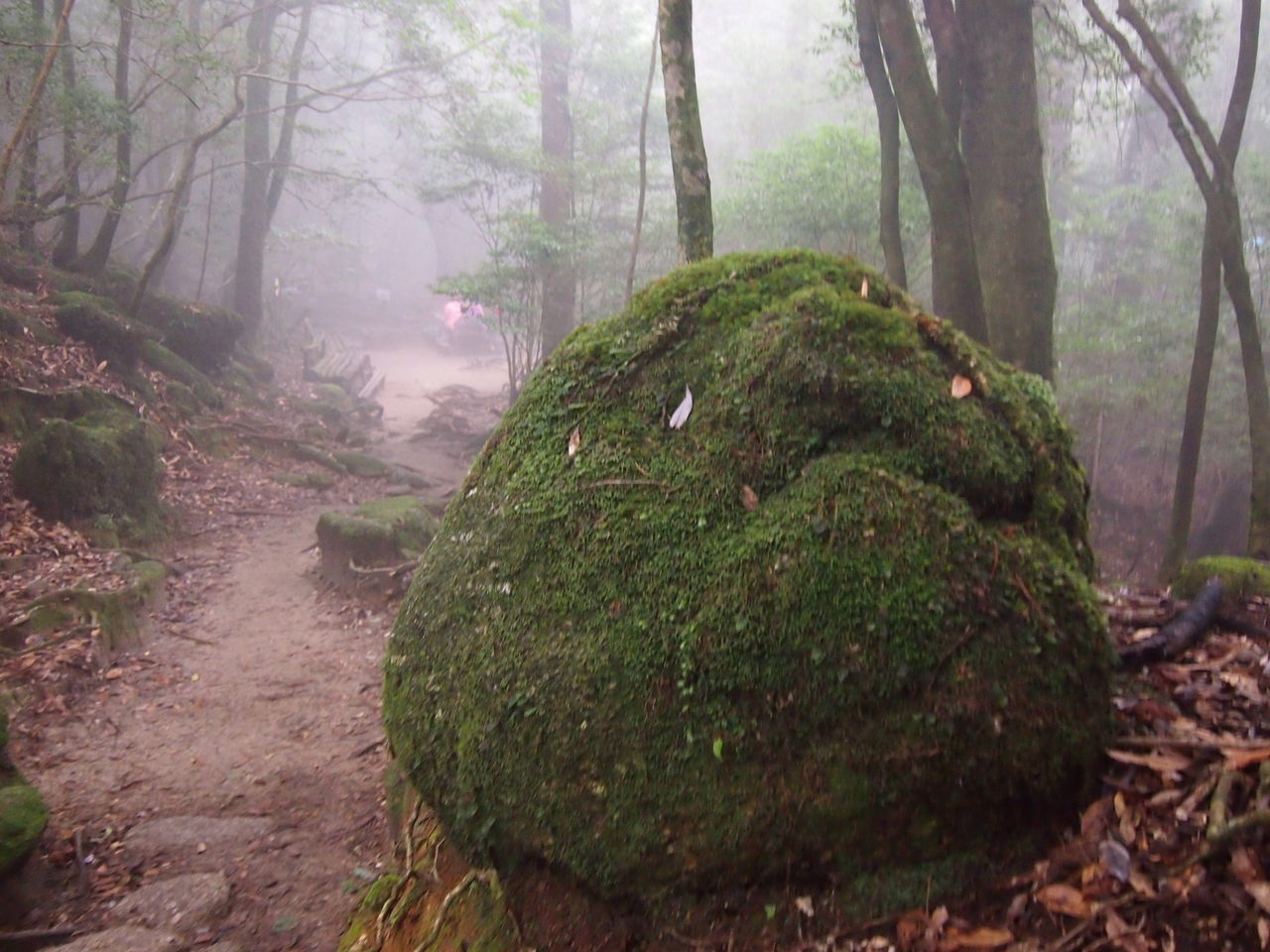 宮之浦港からバスで40分くらい。白谷雲水峡に着いたころには一面の霧。屋久島は「一ヶ月のうち15日雨が降る」とも言われるぐらい、多湿多雨。これぐらいの霧はさして珍しいことじゃあないみたい。