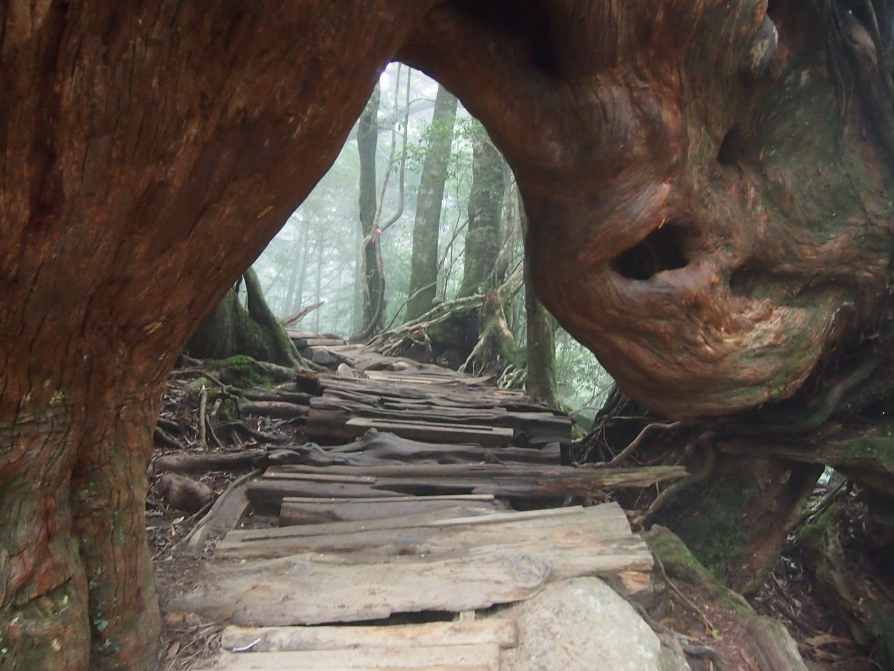 もののけ姫の舞台となった『苔むす森』までは往復3時間のコース。俺は「早く先が見てえ」と躁状態ですっ飛ばしていったので1時間40分で往復できた。山を歩くとはいえ半分以上歩道が整ってるコースなので、靴と飲み物、雨具さえあれば本格的な山歩きスタイルまでは必要ないかも。あるにこしたこたあ無いだろうけど。