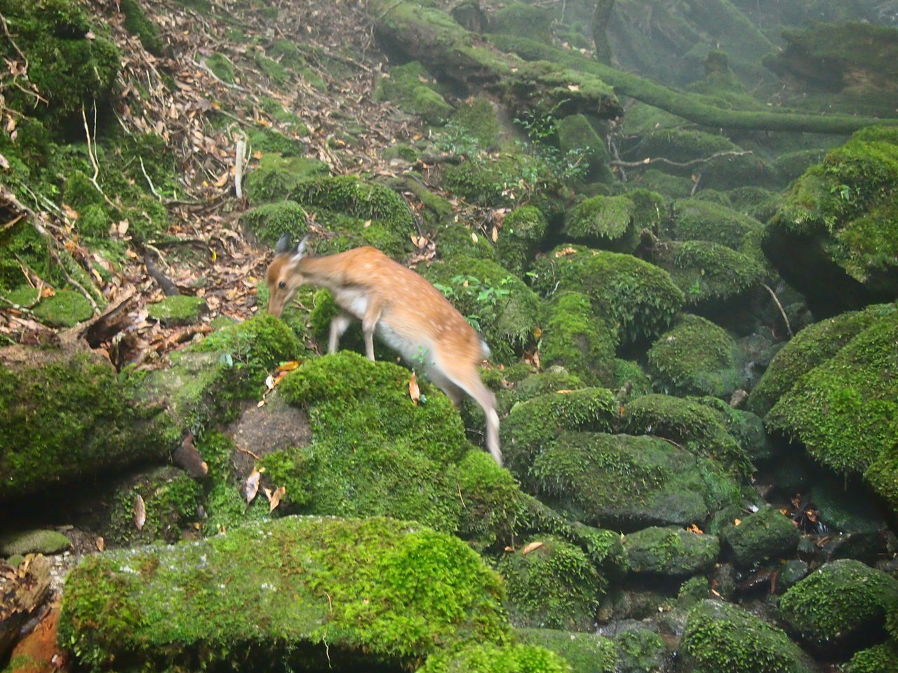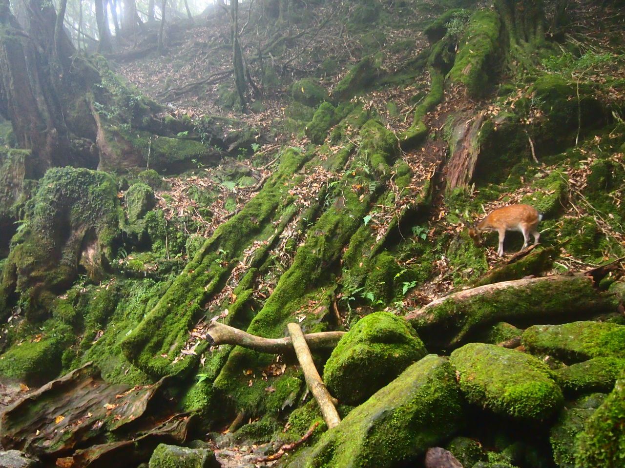 そうこうしてたら、鹿まで出てきた。本土の鹿よりも体長がすこし小さなヤクシカ。まんま、もののけ姫の世界じゃないか。