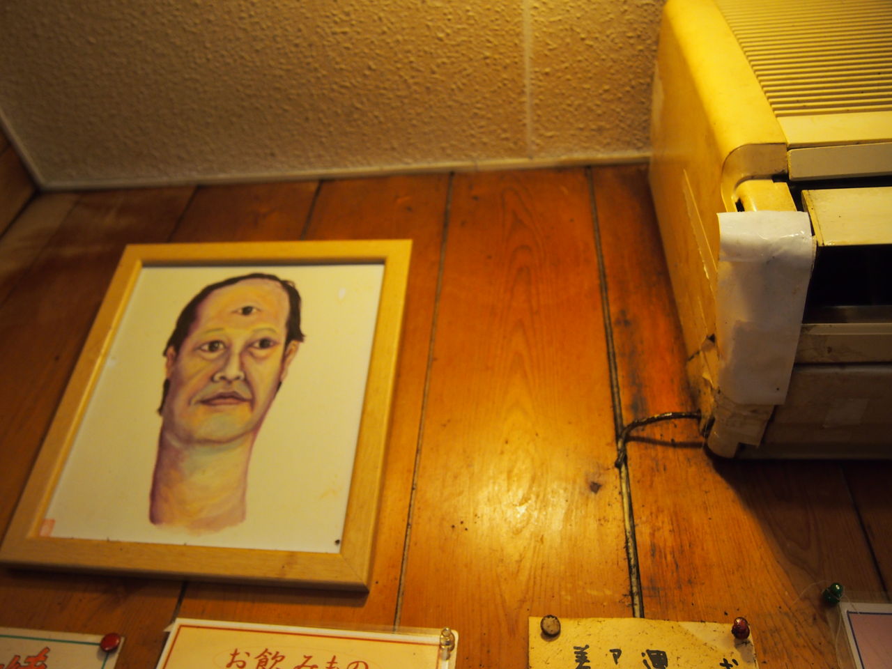 店内のエアコン脇には、店主を妖怪化したイラストが飾られている。結構似てる。