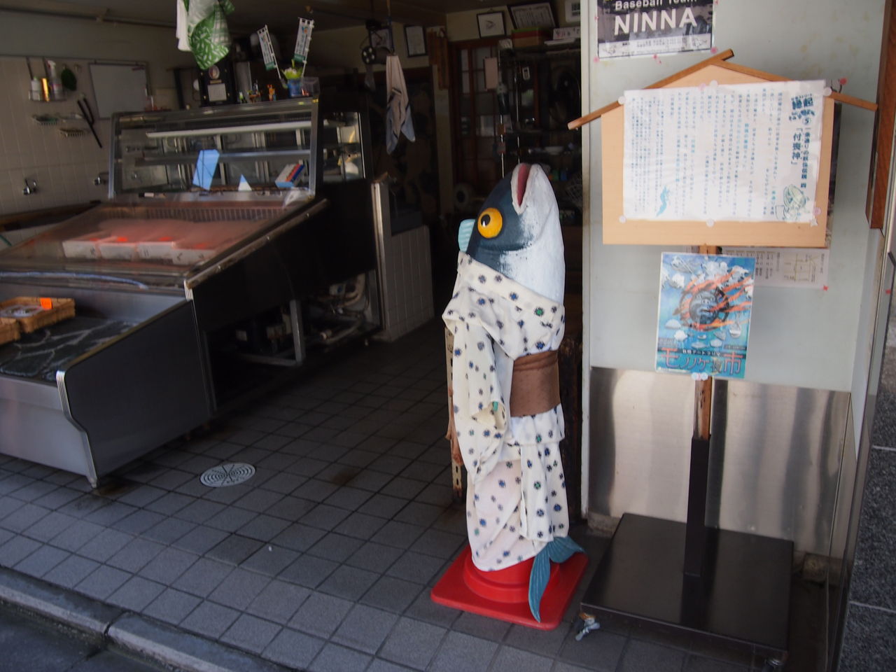 もちろん店頭には妖怪がいる。ベロを出した、謎の筒。