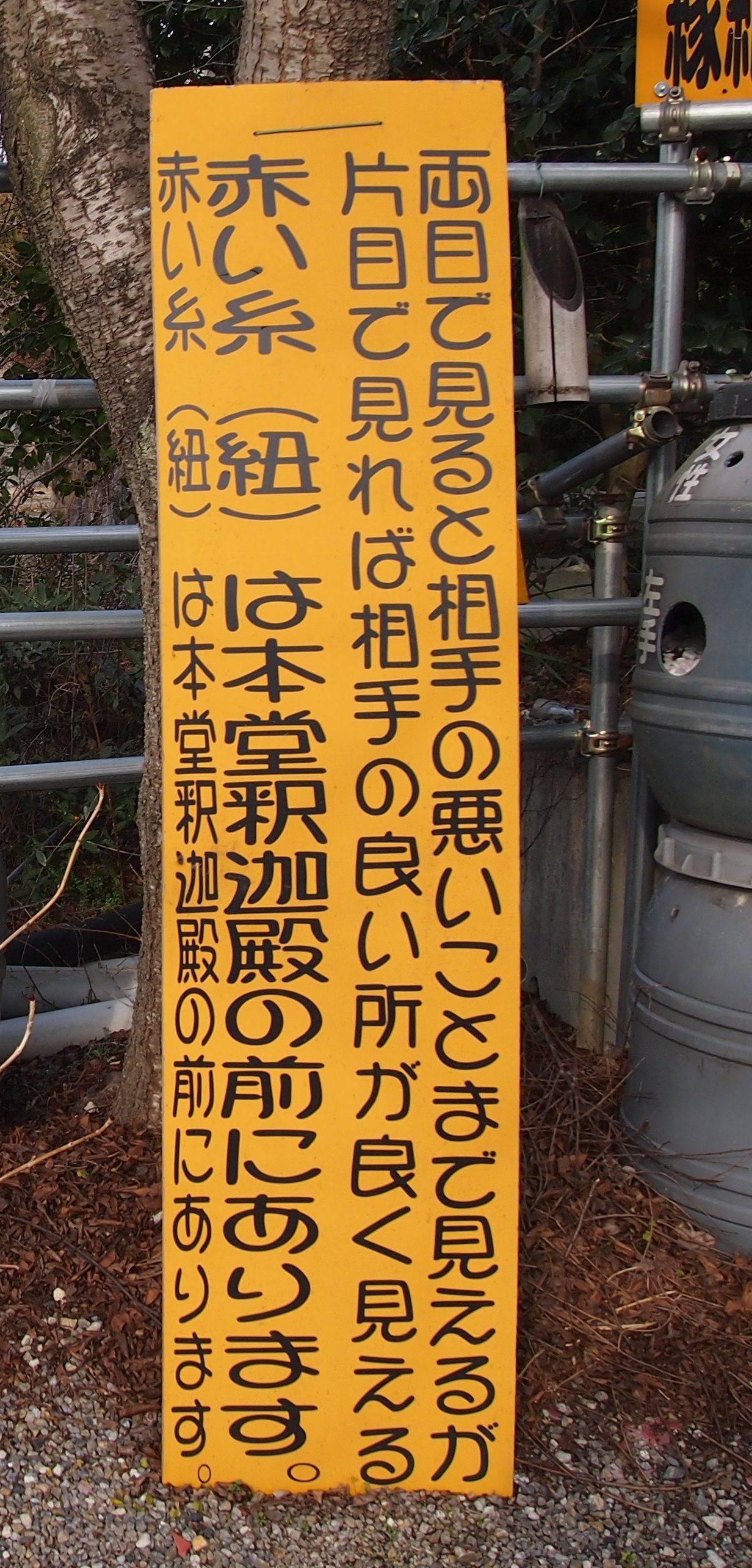 赤い糸(紐)は本堂釈迦殿の前にあります。