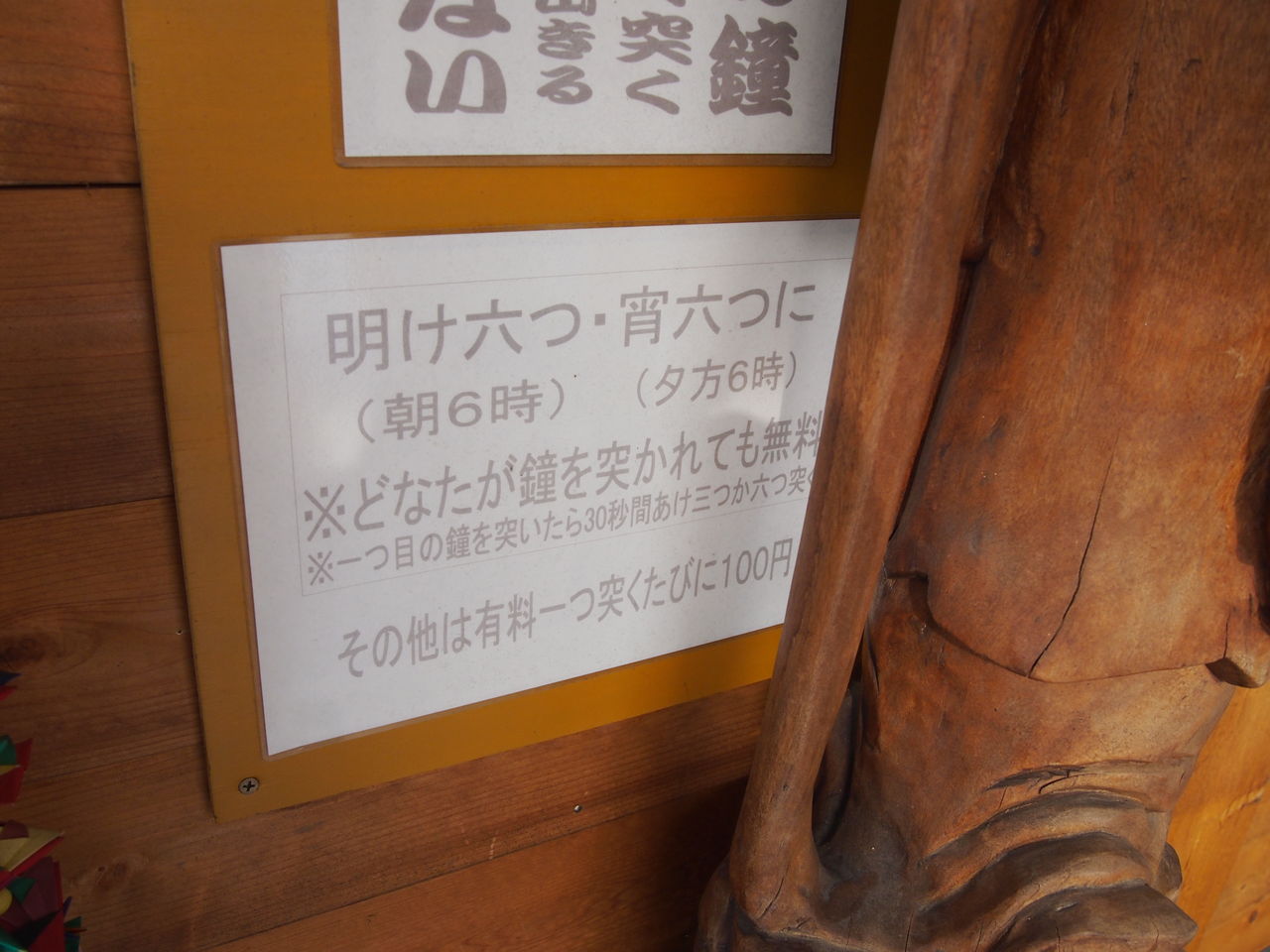 ●朝6時と夜6時以外に突くと、100円かかる鐘