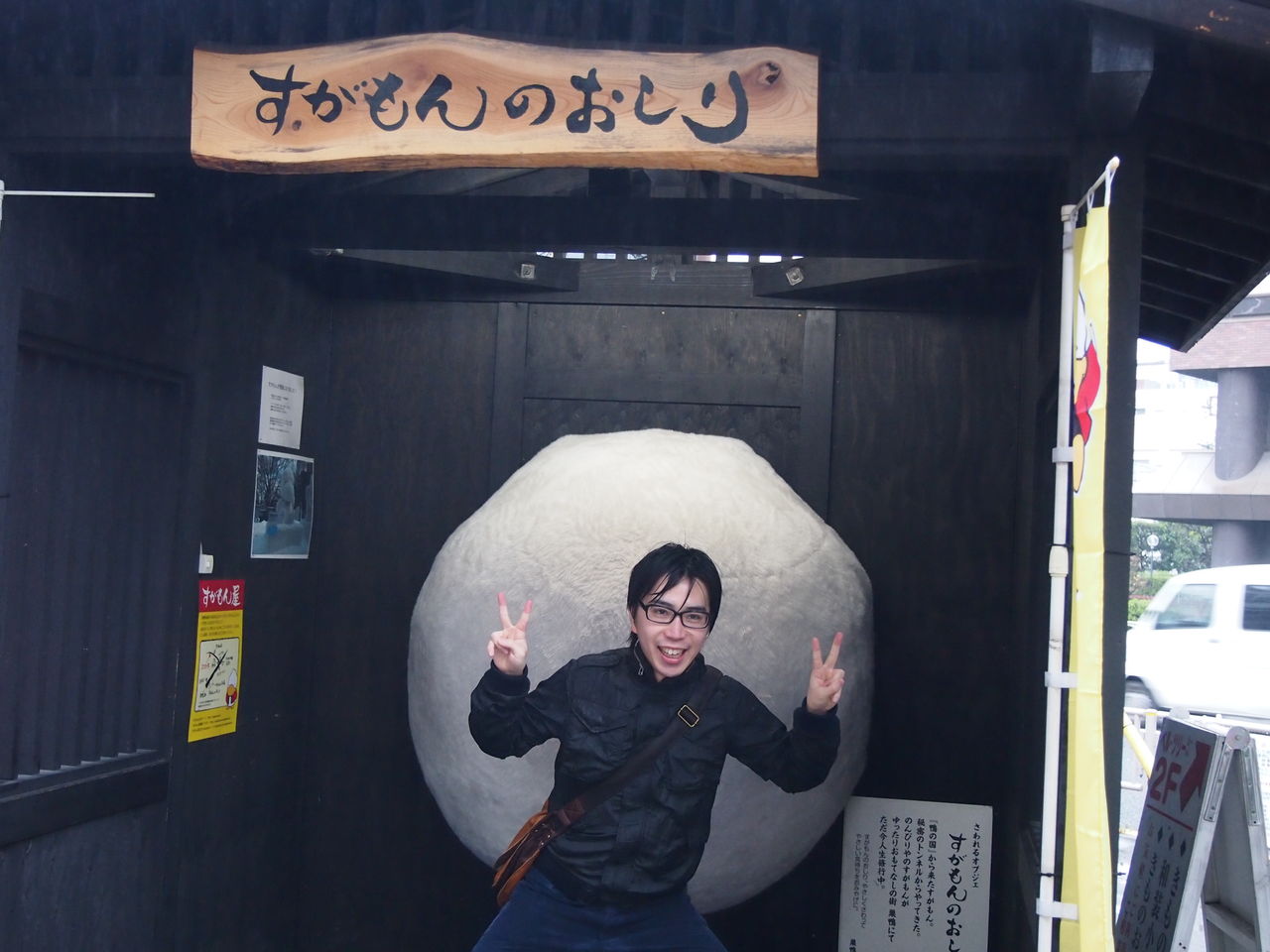巣鴨のマスコットキャラ「すがもん」のお尻を揉みしだける、合法セクハラスポットでパシャリ。まだまだ余裕しゃくしゃく、笑顔も本物の笑顔だ。