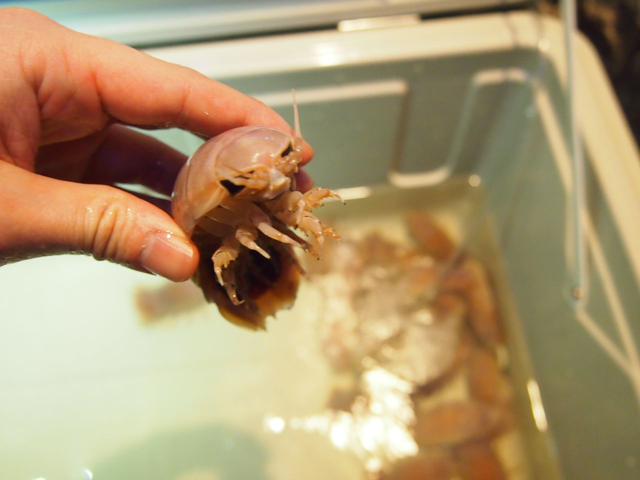 深海祭りということで、オオグソクムシの水槽が特設されてた。