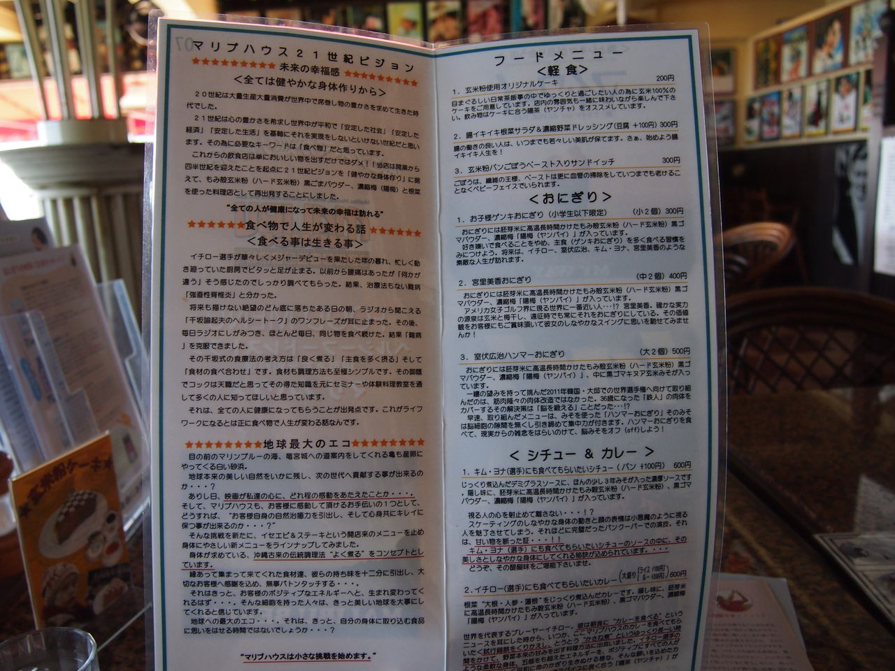 右側がメニューで、左側は店主の食に対する想いだ。